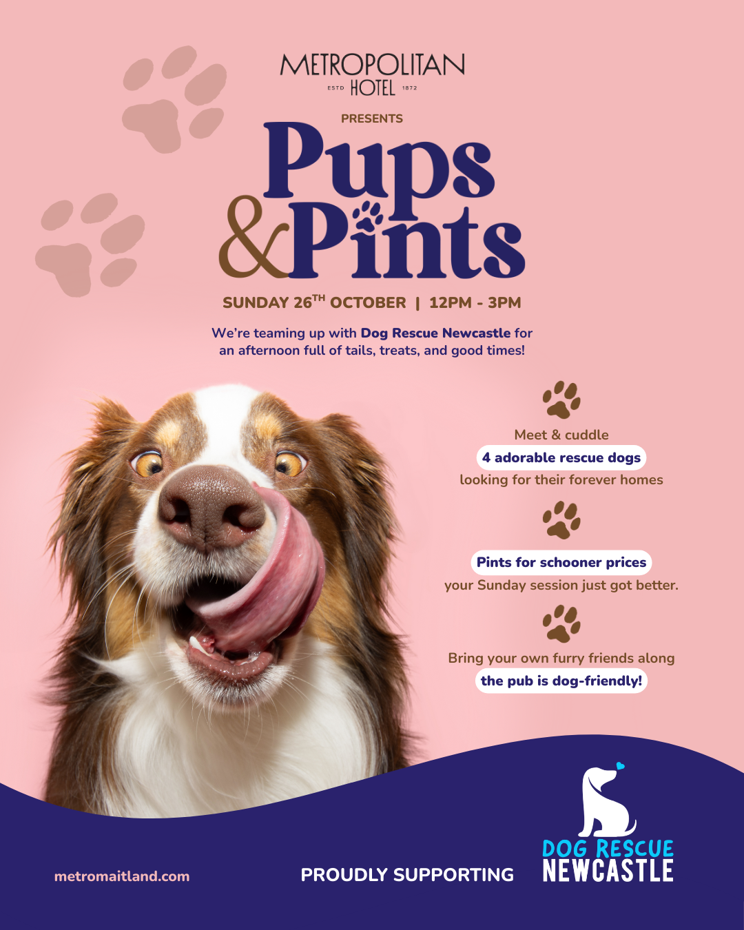 Dog Rescue Newcastle is teaming up with the crew at the Metro Maitland, for a pawsome afternoon of puppies, dogs and good vibes.